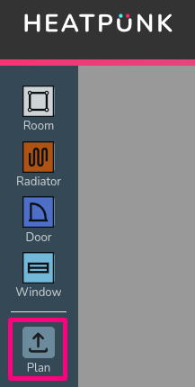 Open an existing project or create a new project and navigate to the floor level you want to upload the plan to. Click on the plan button on the left hand side of the page to upload a plan.