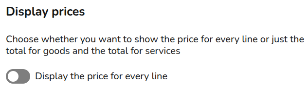 Finally, you can select whether you'd like prices to display for each line item or for it to only show totals or subtotals.