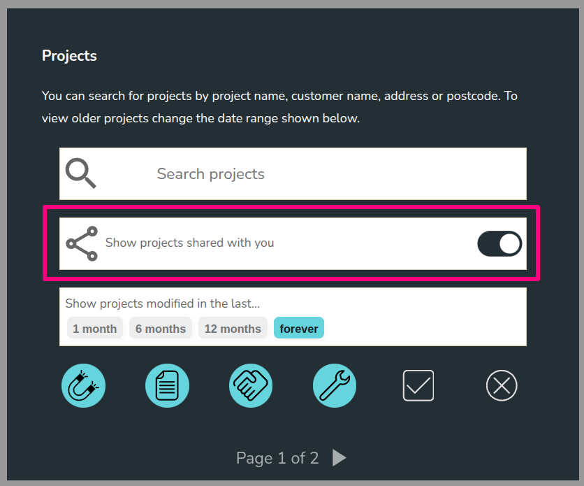 - From your project list on the My Projects page - click on the share icon on the project you want to share