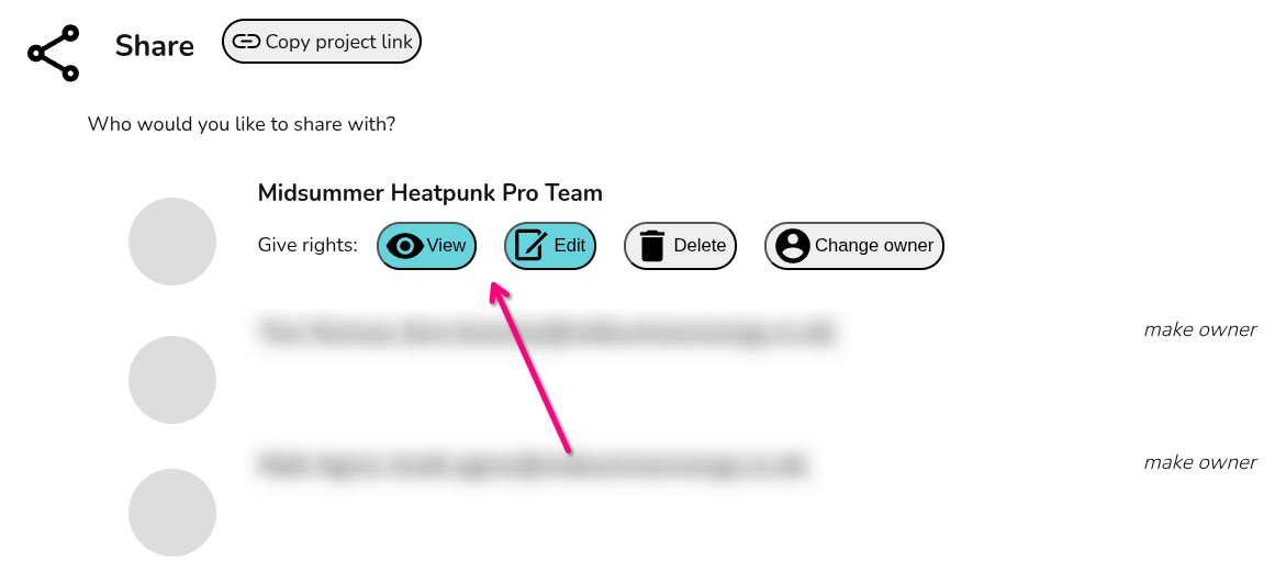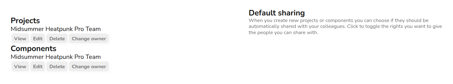 With Heatpunk pro you're able to collaborate with your team by sharing projects and components. See below how you can configure your sharing settings.