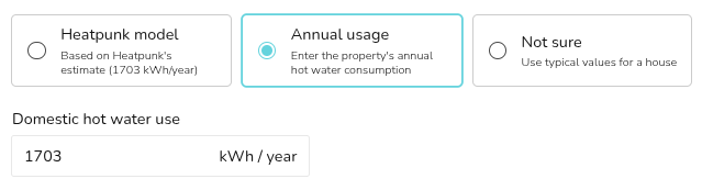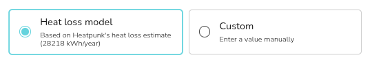 Choose the annual space heating demand using Heatpunk's heat loss model or by entering a custom value.