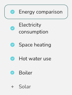 Edit inputs Update the electricity, hot water and space heating consumption, energy comparison and solar information |