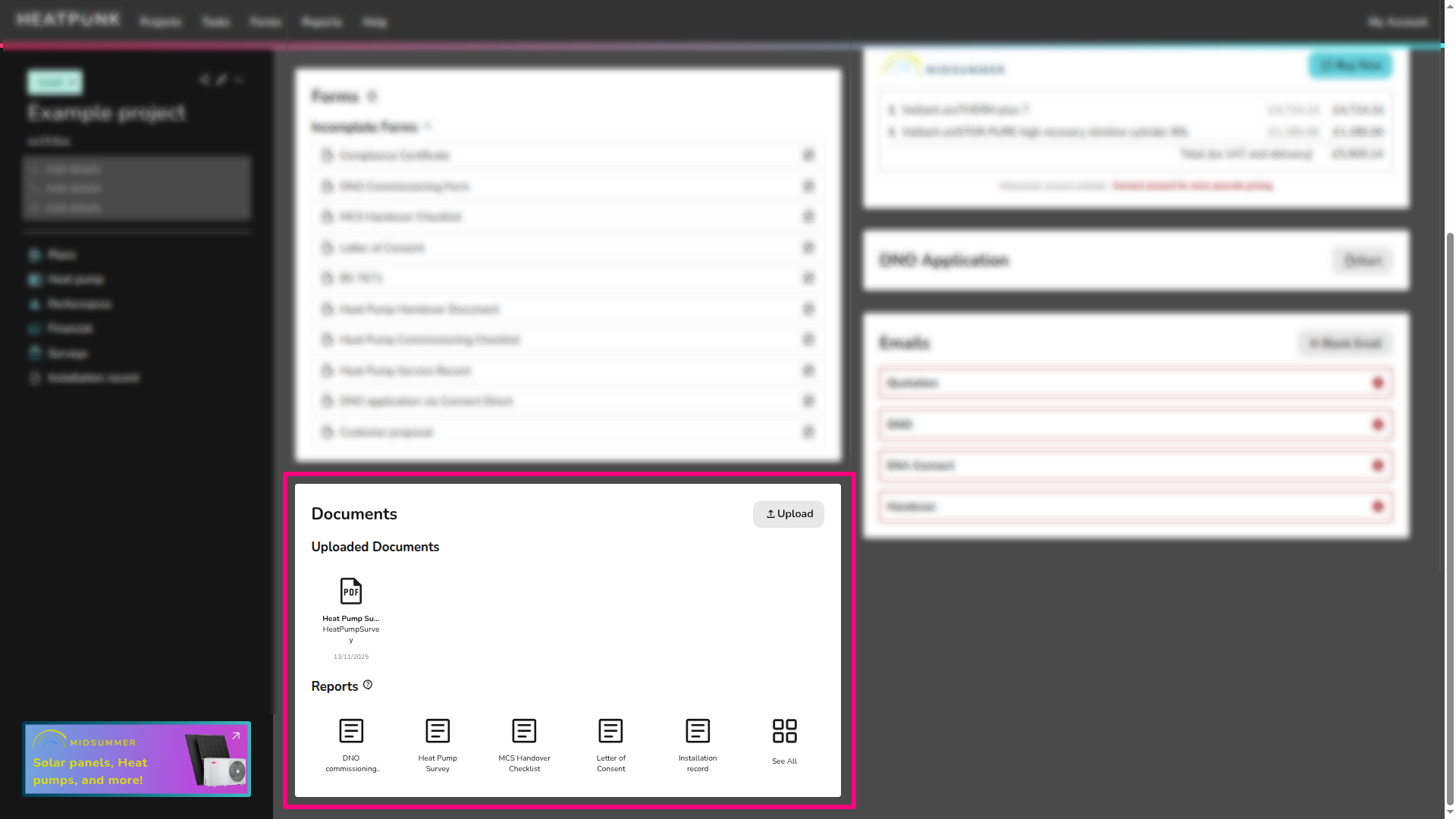Pro enables you to upload and store documents within a project, allowing you to keep track of everything you need for a project in one place. Documents uploaded here can also be attached to any emails sent within Heatpunk.