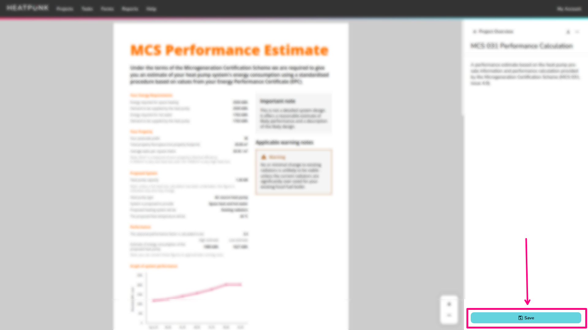 When previewing any report in Heatpunk, you will see a menu on the right-hand side with a save button at the bottom. This will save the file to the document manager.